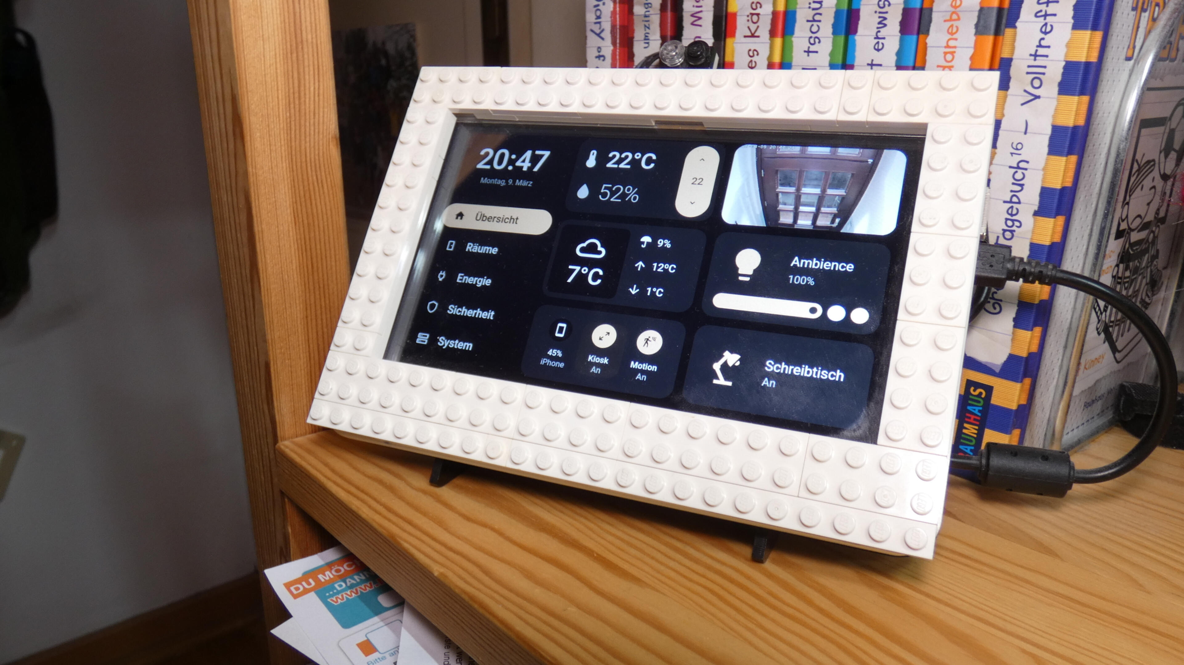To control the devices and access important information in my room, I built a dashboard using a Raspberry Pi and a display and designed an interface for it.
