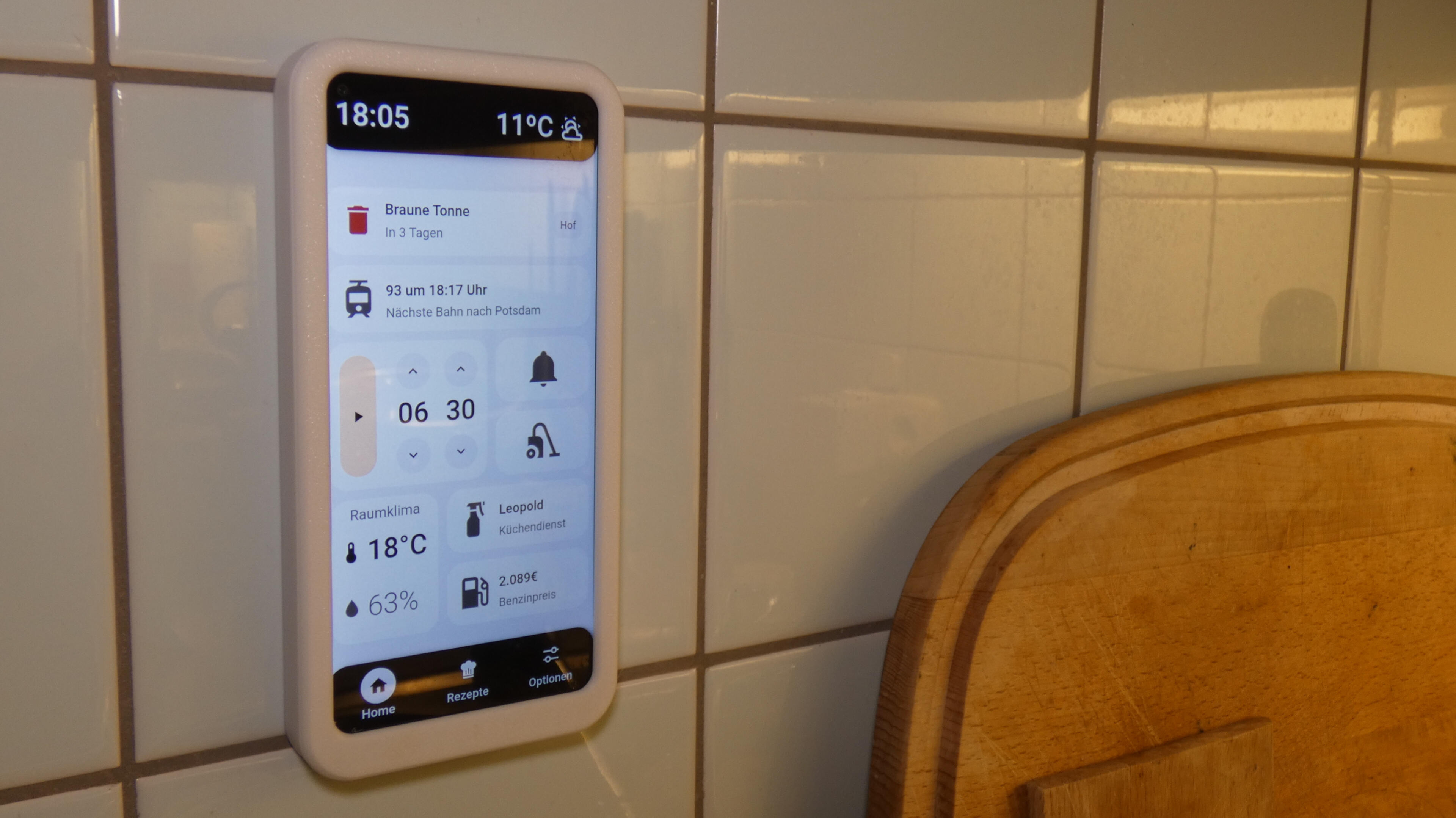 To provide easy access to functions and information needed in the kitchen, I developed and implemented the interface for a kitchen dashboard.